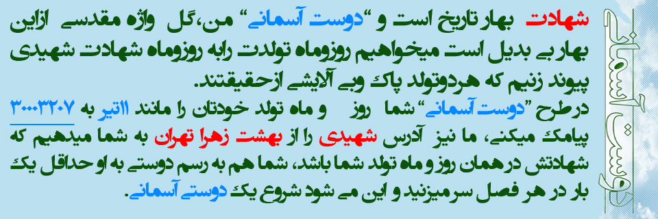 ادرس دوست آسمانی ما به صورت دستی از روی سنگ مزار شهدا نوشتیم